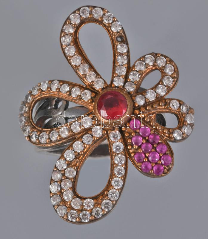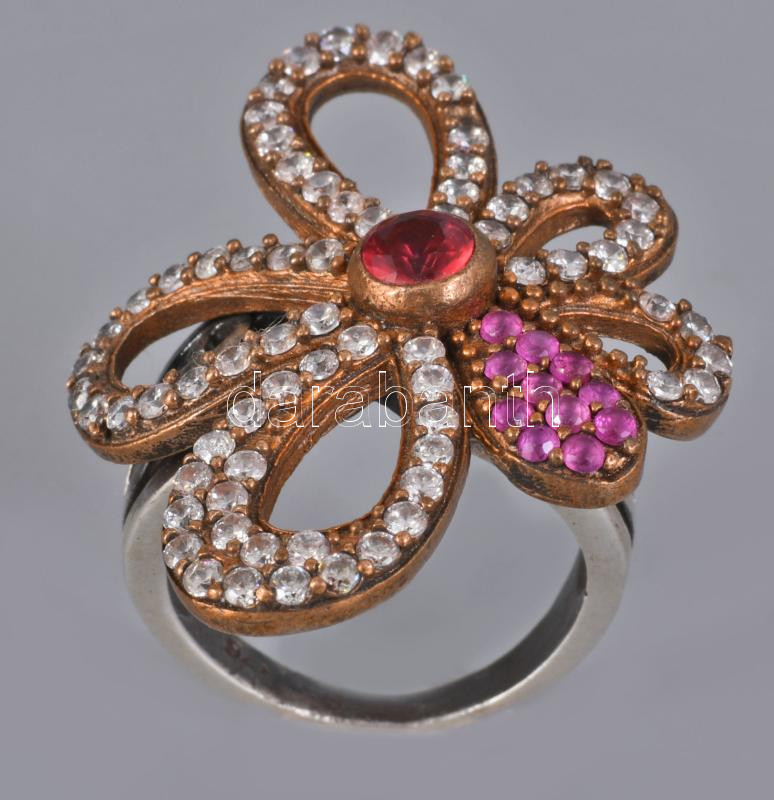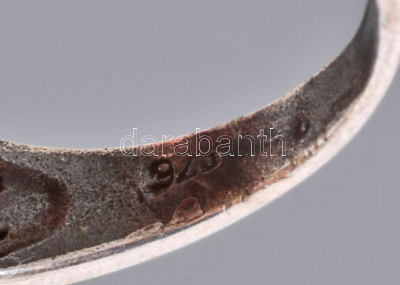 Ezüst (Ag) gyűrű kövekkel díszítve, kőhiánnyal, jelzett, méret: 55, bruttó: 10,54 g