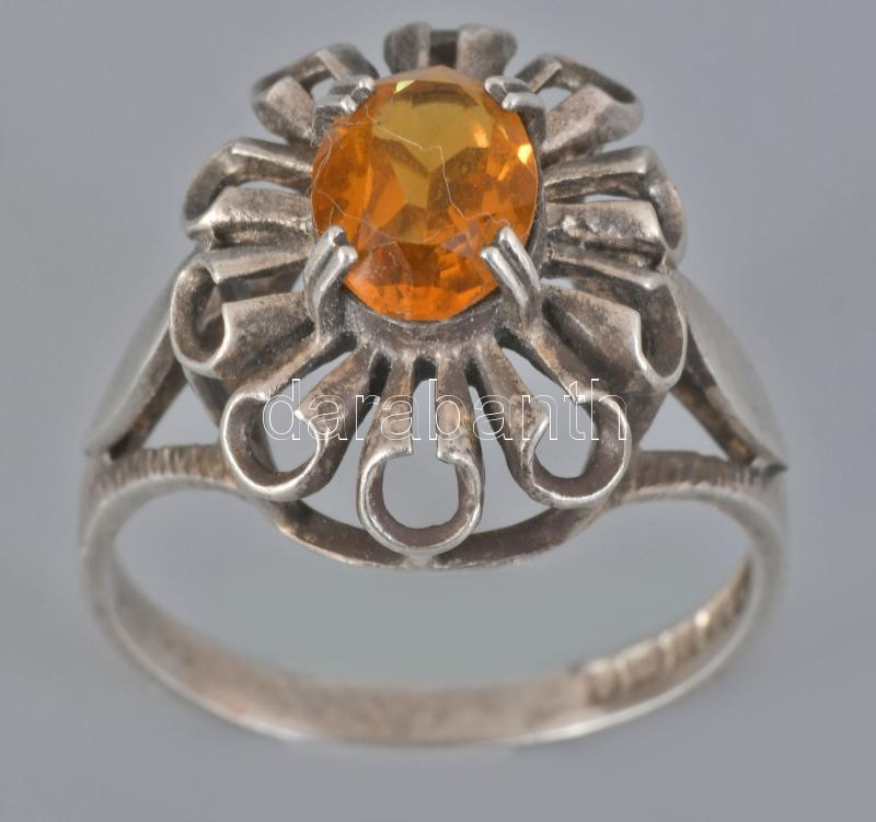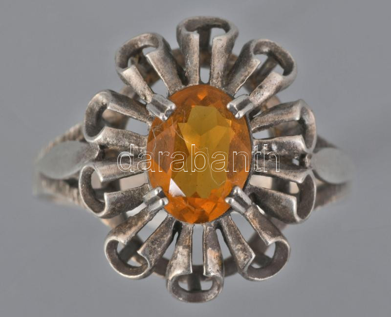 Ezüst (Ag) gyűrű sárga kővel, jelzett, méret: 55, brutó: 3,48 g