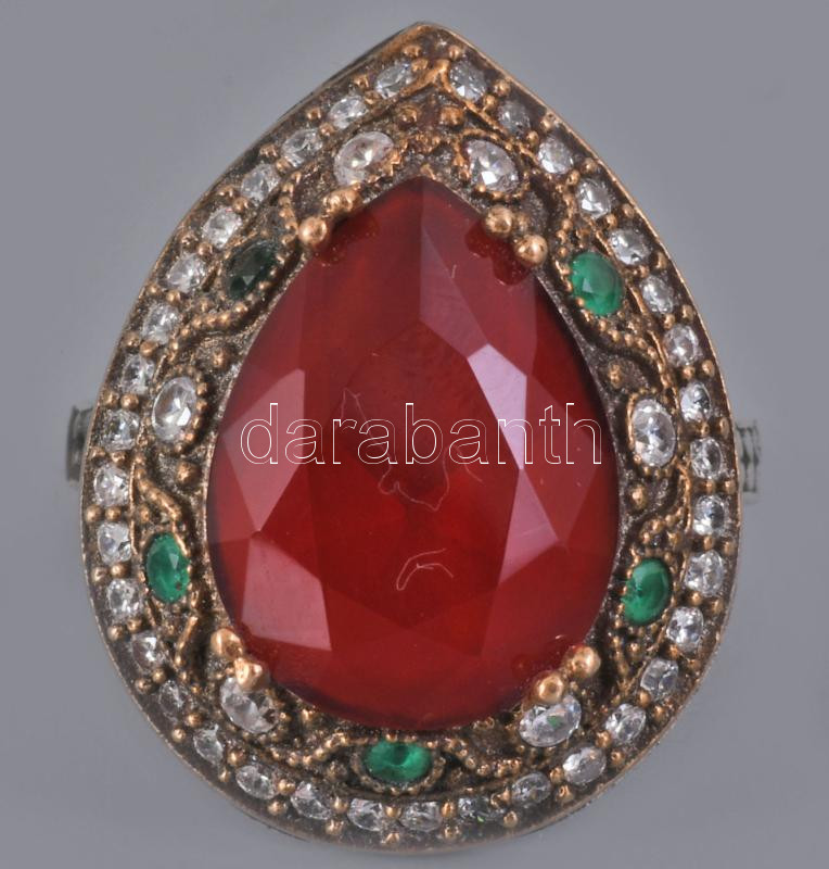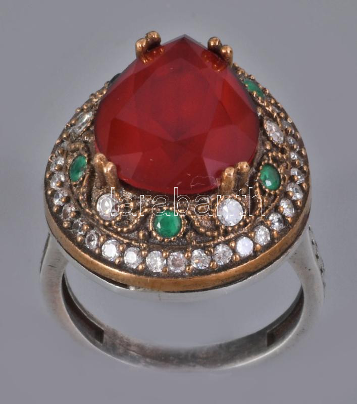 Ezüst (Ag) gyűrű szintetikus rubinnal, jelzett, méret: 56, bruttó: 10,36 g