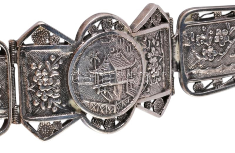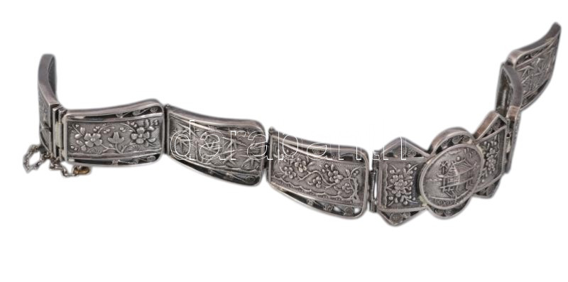 Ezüst (Ag) karkötő, biztonsági lánccal, jelzett, javításra szorul, h: 20 cm, 28,4 g