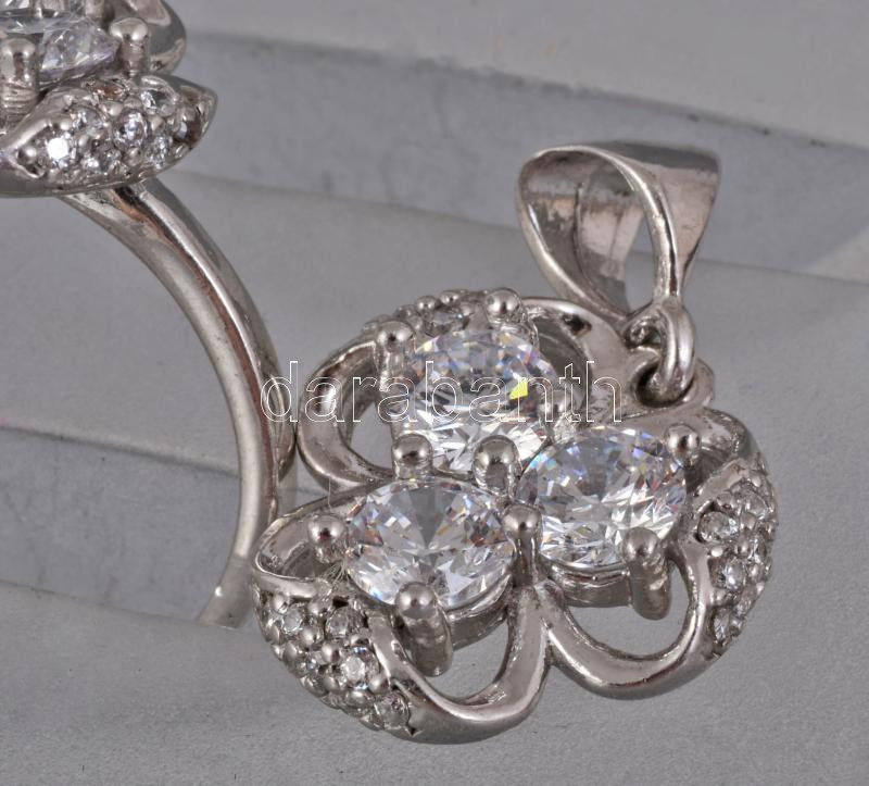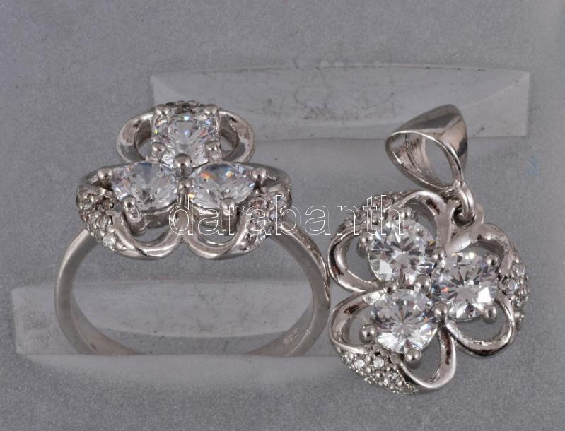 Ezüst (Ag) köves gyűrű hozzáillő medállal, jelzett, méret: 56, d: 1,7 cm, bruttó: 7,46 g