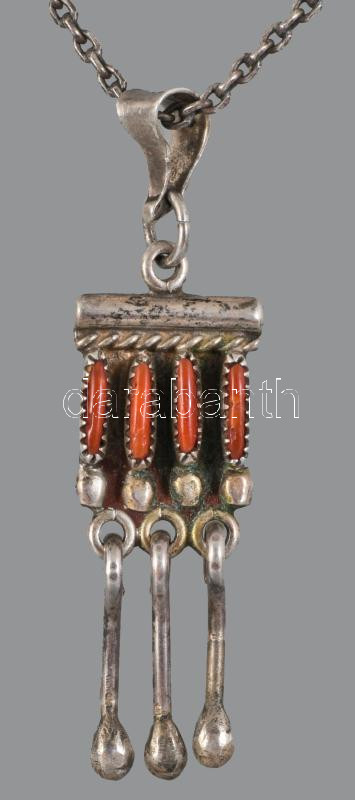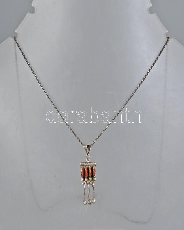 Ezüst (Ag) nyaklánc korallal, jelzett, h: 54 cm, bruttó: 4,4 g