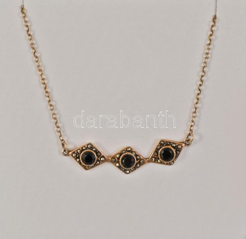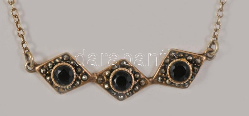 Ezüst (Ag) nyaklánc kövekkel díszített középrésszel, jelzett, h: 36 cm, bruttó: 3,04 g