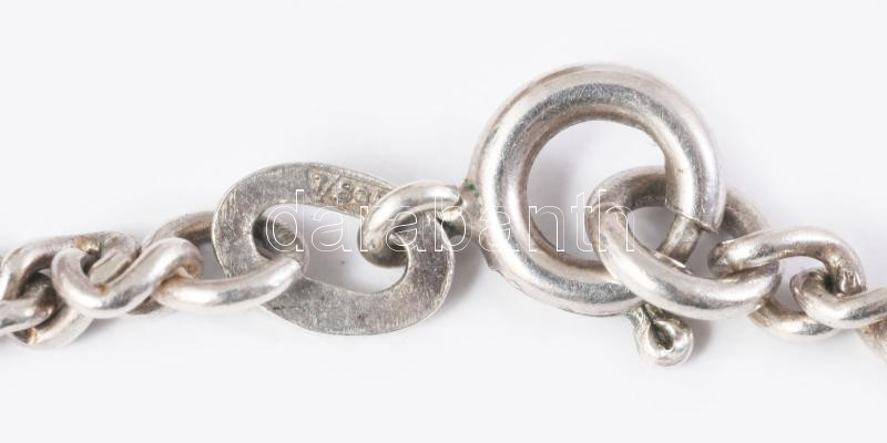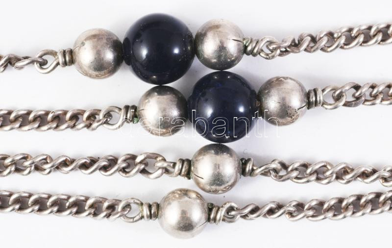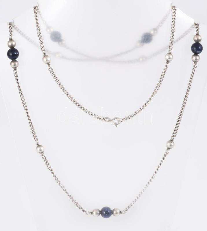 Ezüst (Ag) nyaklánc, lapis lazuli szemekkel, jelzett, 835 ezrelékes, h: 80 cm, bruttó 23g