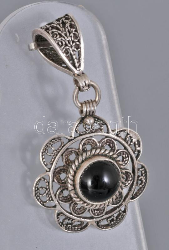 Ezüst (ag) medál, ónix berakással, bruttó 4,56g