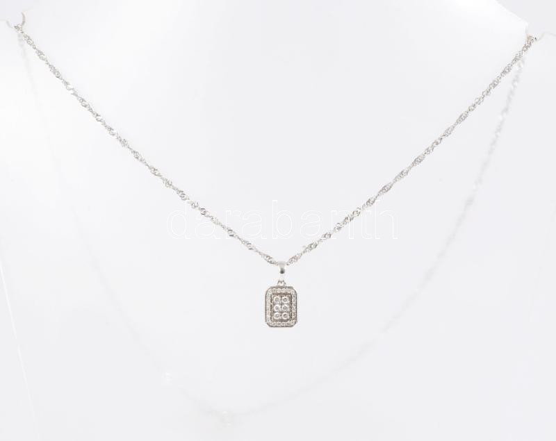 Fehérarany (Au) nyaklánc moissanite berakásos medállal, jelzett, 9k, bruttó 3,2g