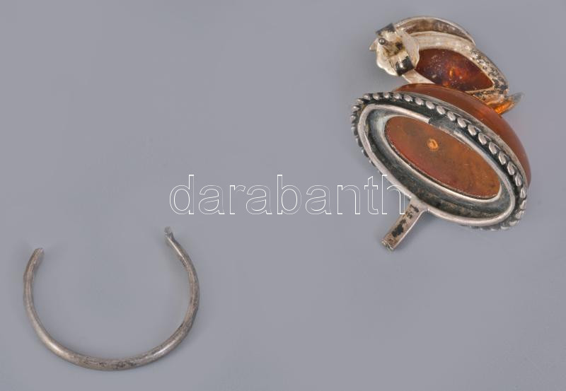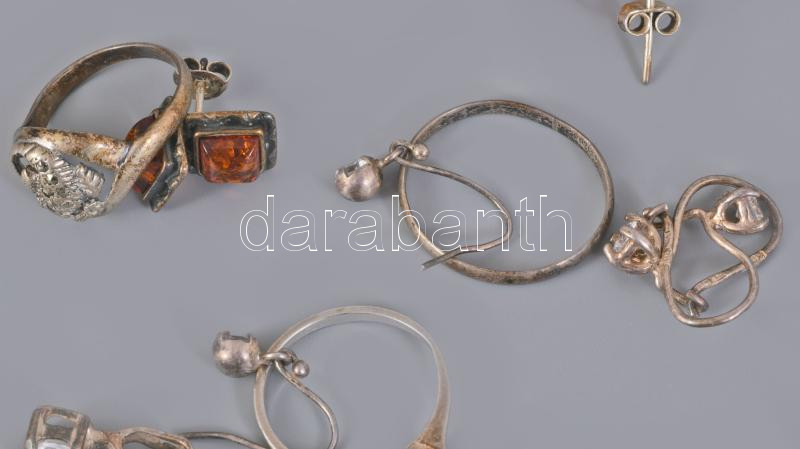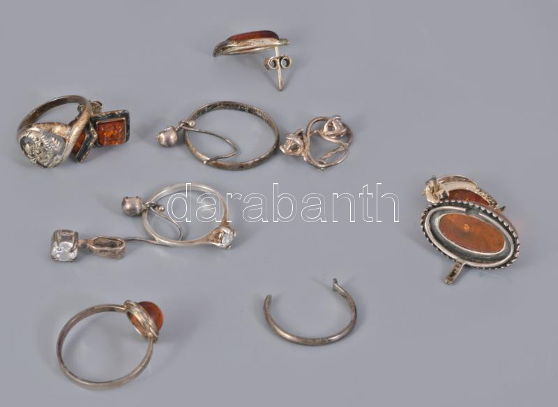Vegyes ezüst (Ag) ékszer tétel, közte sérültek, kőberakással, borostyán berakással, bruttó 19,1g