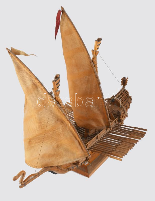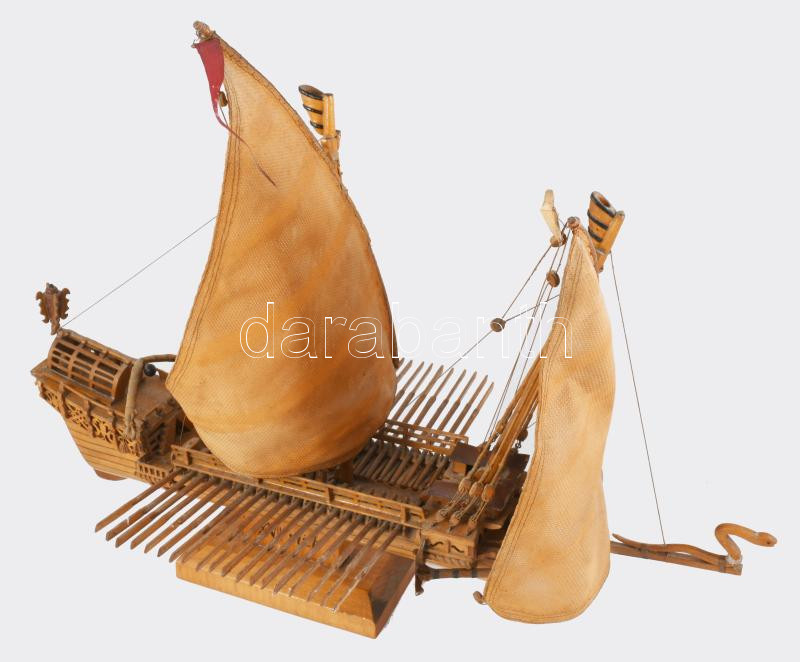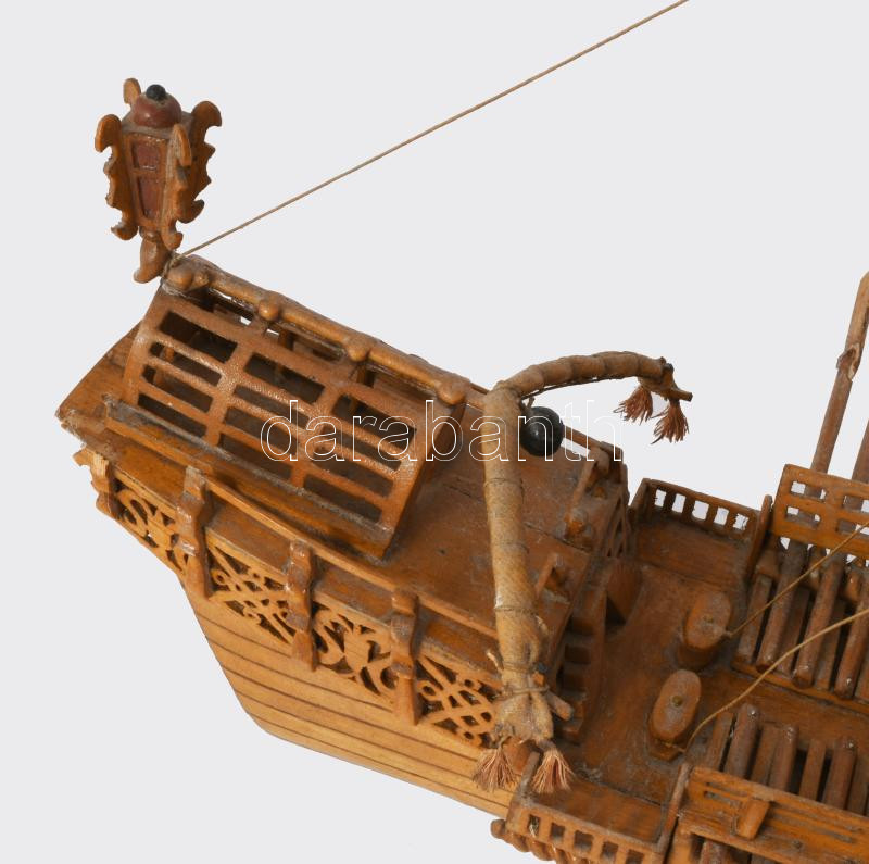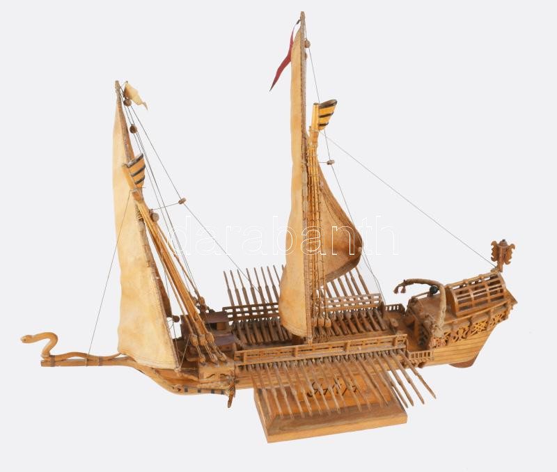 17. századi gálya sokdarabos kézműves makettje, cca 60x48 cm