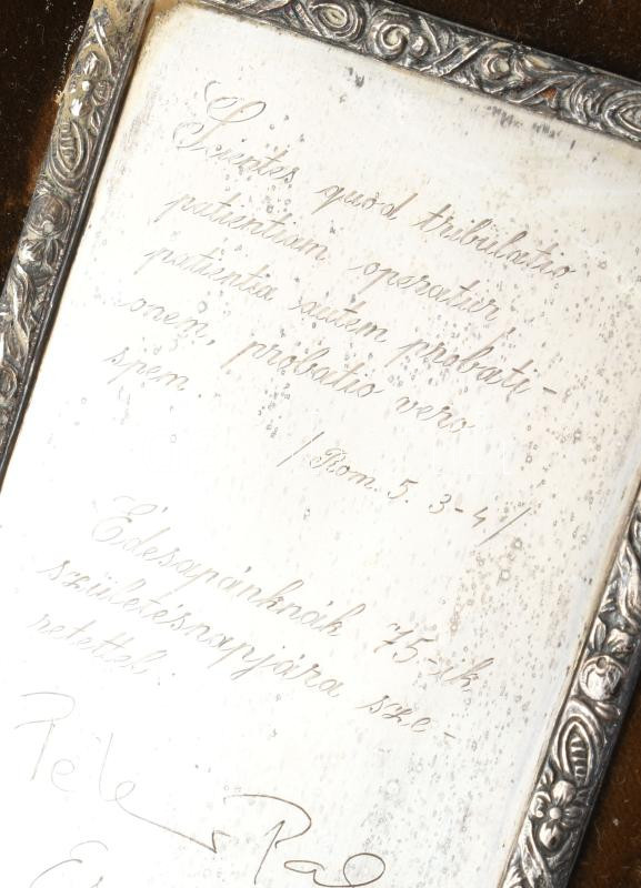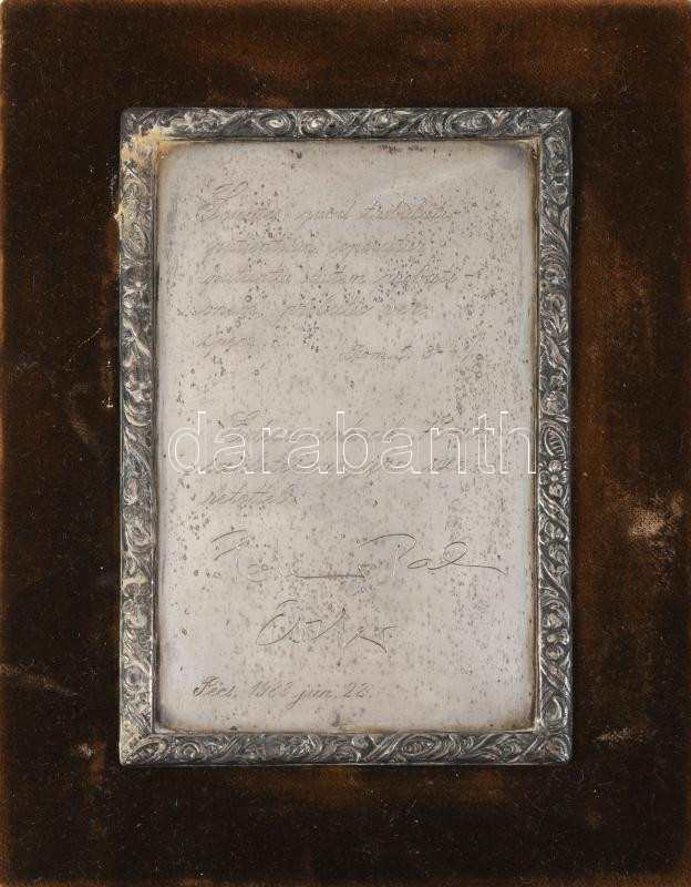 1986 Születésnapi ajándék véset ezüst (Ag) keretezésben, bársonyborítású keretben, 15x11 cm