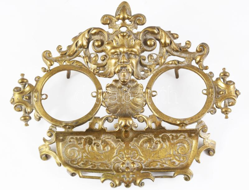 Asztali tinta és tolltartó betét nélkül. Réz, XIX. sz. 28 cm