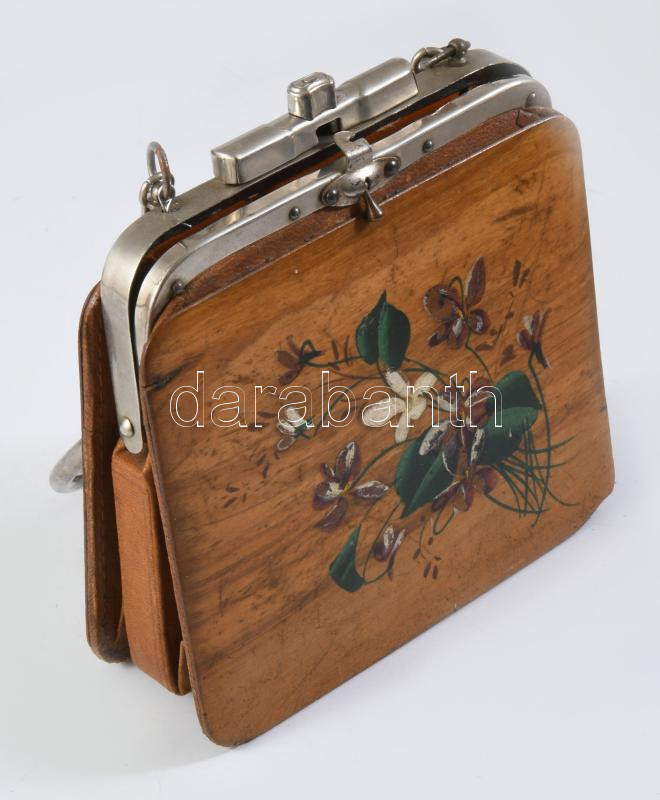 Cannes jelzéssel fa lapos női táska, cca 1920, kopással, 13x13 cm
