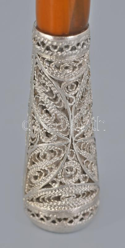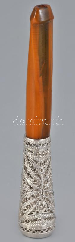 Ezüst (Ag) szipka, filigrán díszítéssel, h: 6,5 cm