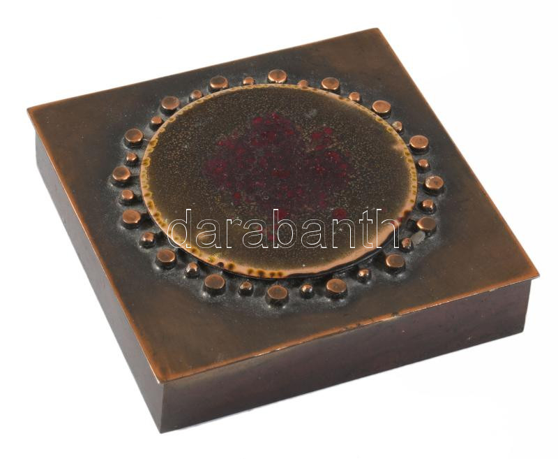Kopcsányi Ottó (1933-2016) Díszdoboz, jelzett, zománcozott 10x10 cm