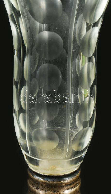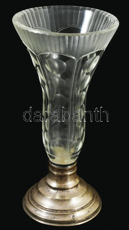 Kristály váza jelzett ezüst (Ag) talppal, m: 19,5 cm