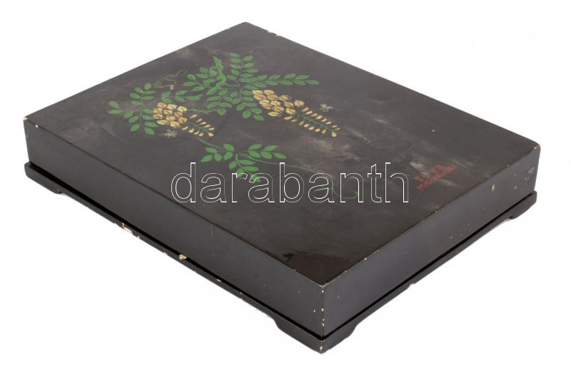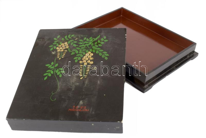 Lakkdoboz. Észak Korea, Phenjan XX. sz. közepe. 26x33 cm Kis kopással