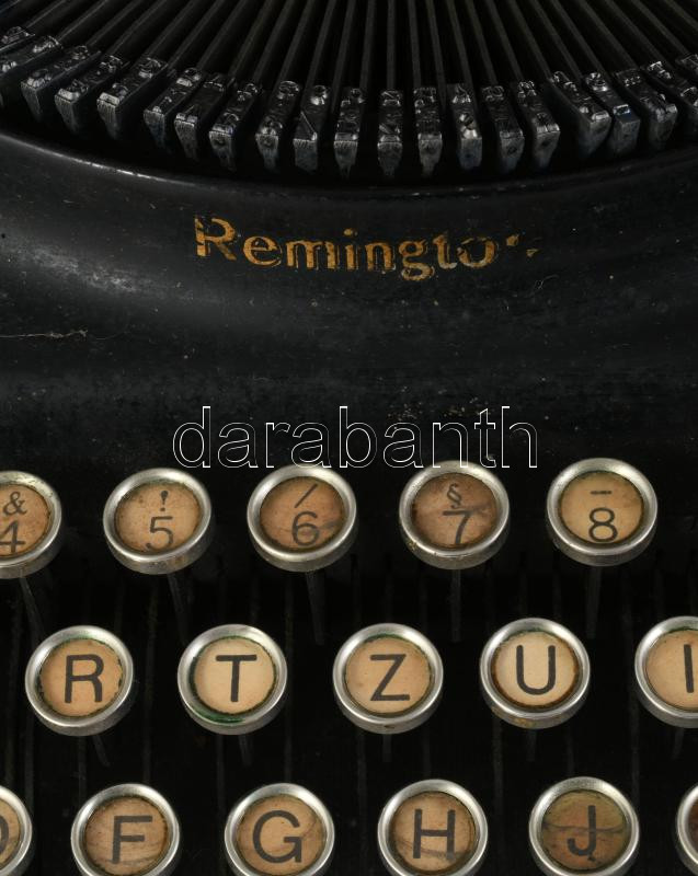 Remington antik írógép, magyar nyelvű billentyűzettel, kissé sérült dobozában.