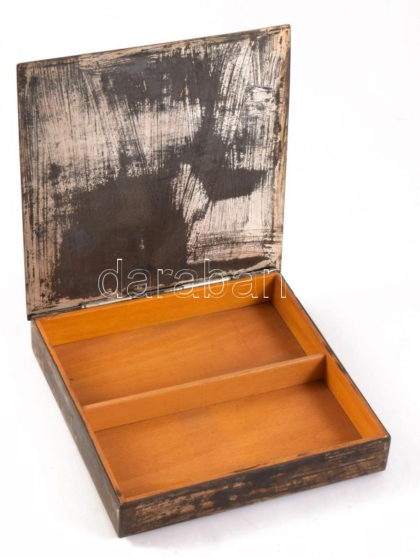 Tevan Margit (1901-1978) doboz domborműves fém díszítéssel. jelzés nélkül, hibátlan . 15x15 cm