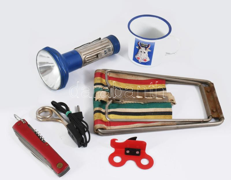 Vegyes retro szovjet kemping tétel, forraló, bicska, szék pohár, stb.