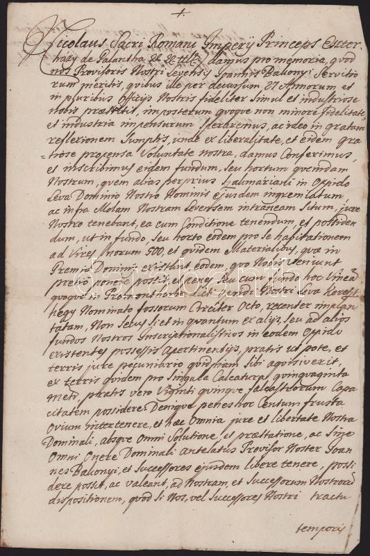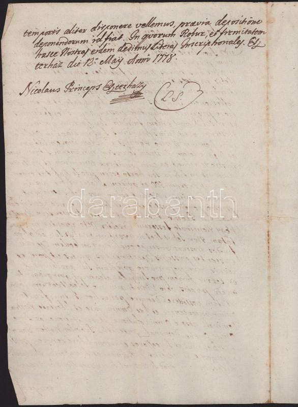 1778 Eszterháza (Fertőd), galántai herceg Esterházy Miklós által kiállított irat korabeli másolata, másfél beírt oldal, latin nyelven