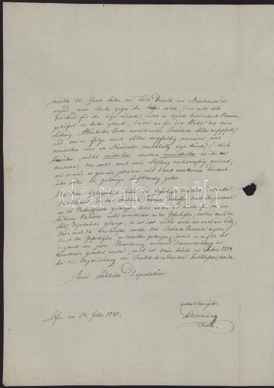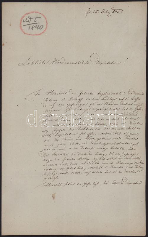 1840 Anton Dolezalek cseh származású osztrák pedagógus, Pesti Vakok Intézetének igazgatója által írt levél