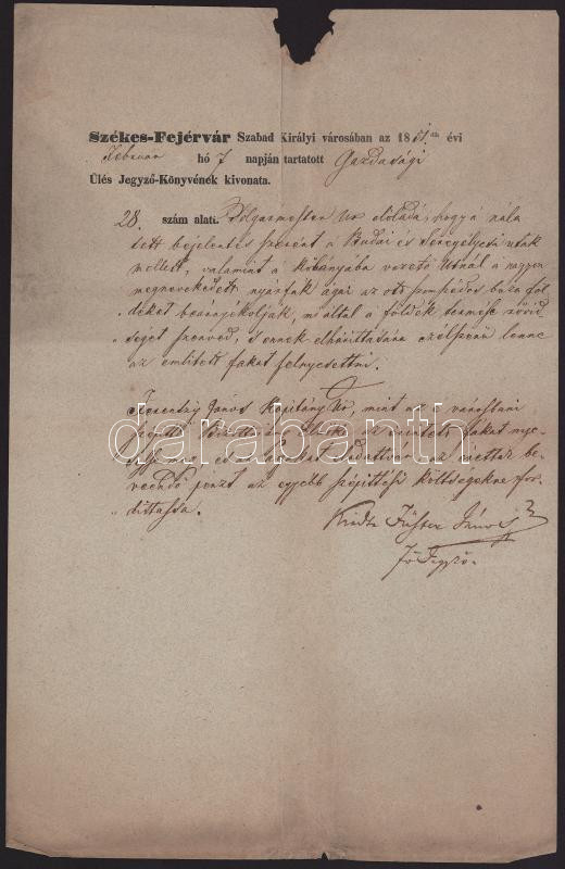 1851 Székesfejérvár városában tartott gazdasági ülés jegyzőkönyvének kivonata