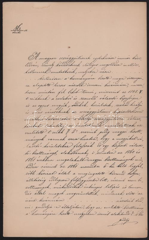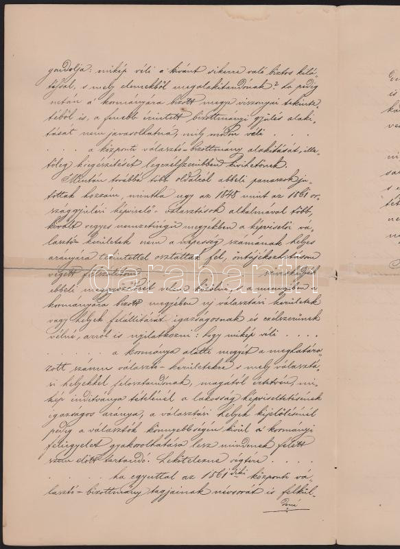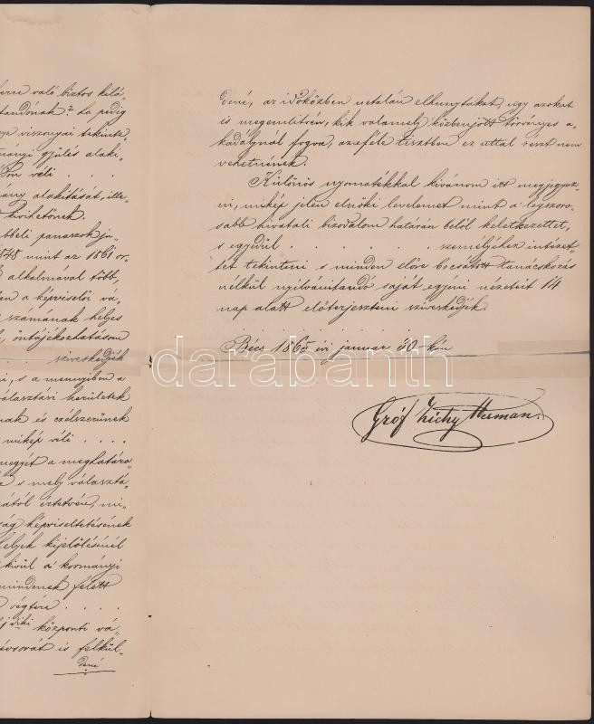 1865 Gróf Zichy Hermann Bécsben kelt levelének másolata, amelyben a közelgő választások problémáival foglalkozik