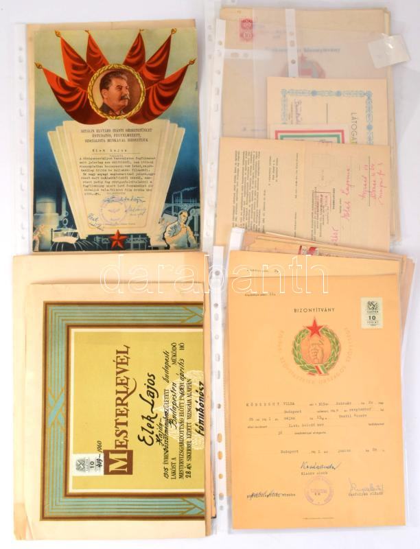1897-1991 Vegyes okmány tétel: fényképész mesterlevél, szocreál emléklapok, bizonyítványok, stb.