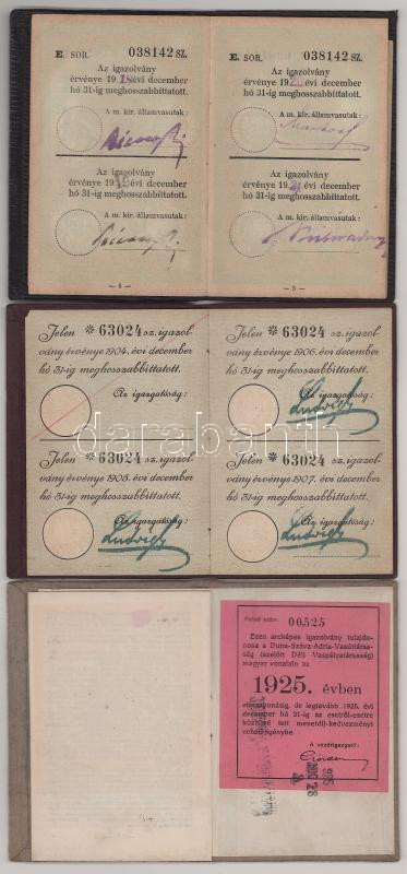 1903-1925 Fényképes MÁV igazolványok, 3 db