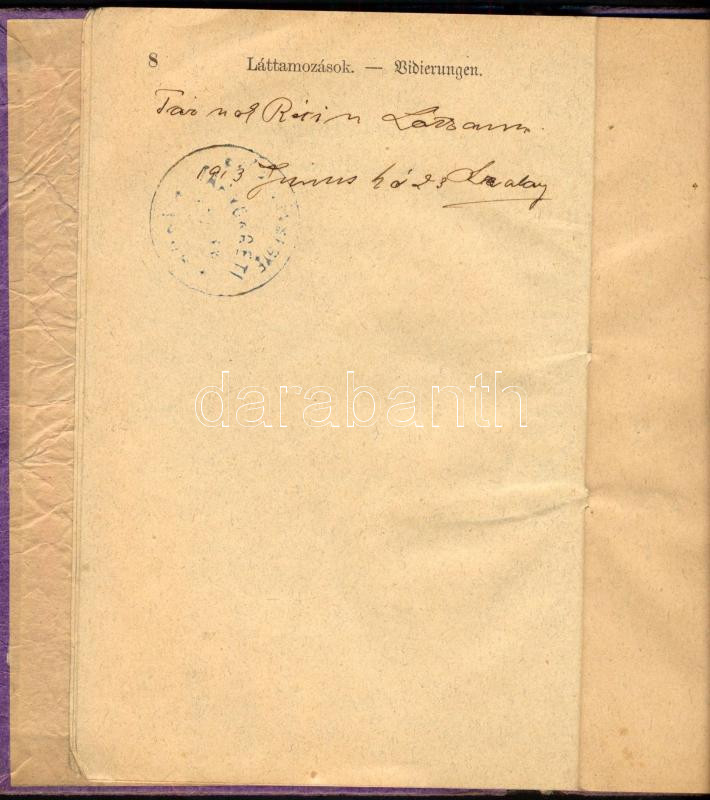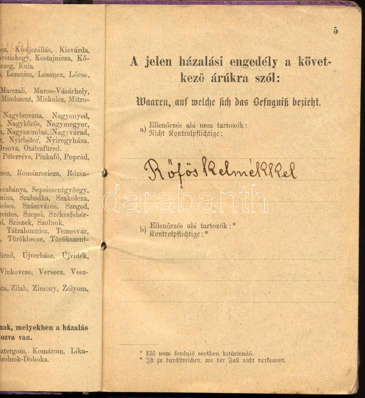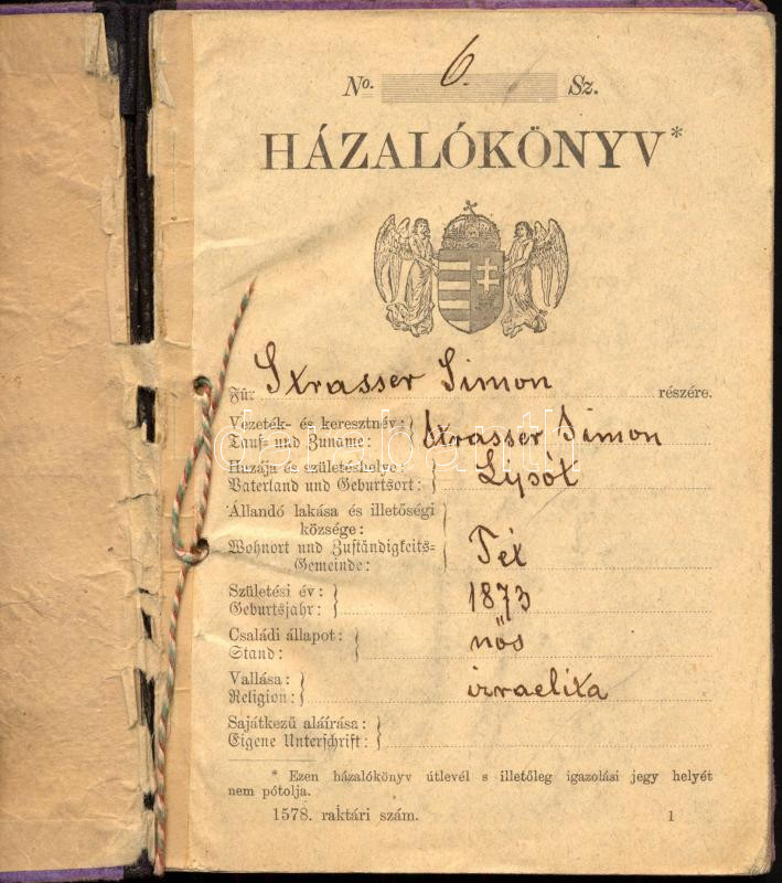 1913 Izraelita rőfös számára kiállított házalókönyv