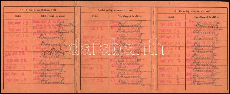 1945 Bp. VIII., Heinrich és Fia Rt. munkaigazolvány