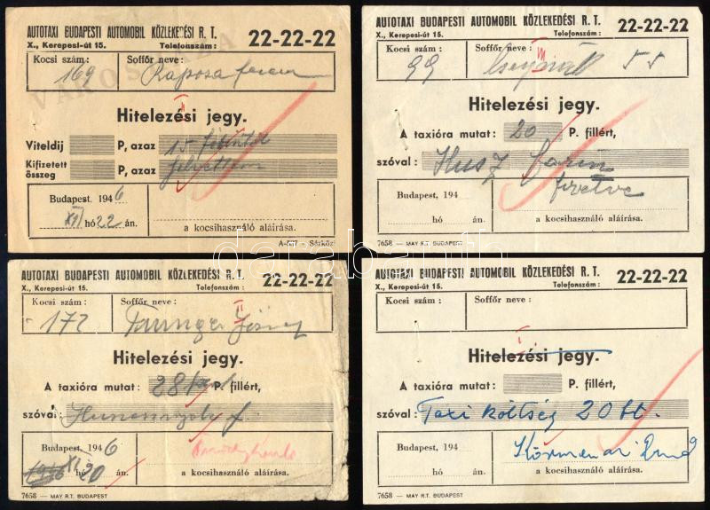 1946 4 db Autotaxi Budapesti Automobil Közlekedési Rt. hitelezési jegy