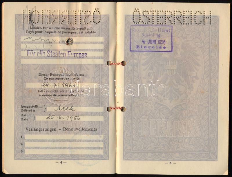 1956 Osztrák útlevél / Austrian passport