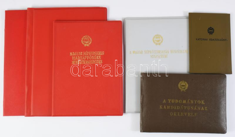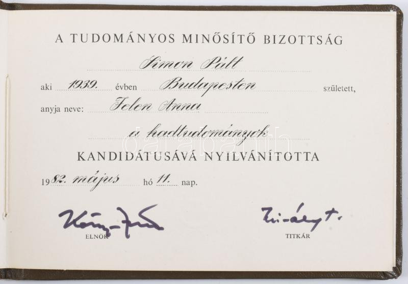 1972-1984 Dr. Simon Pál (1939-2025) katonaorvos, orvos, egészségügyi informatikus okmányai, közte kandidátusi oklevél, katonai igazolvány, oklevelek, összesen 6 db