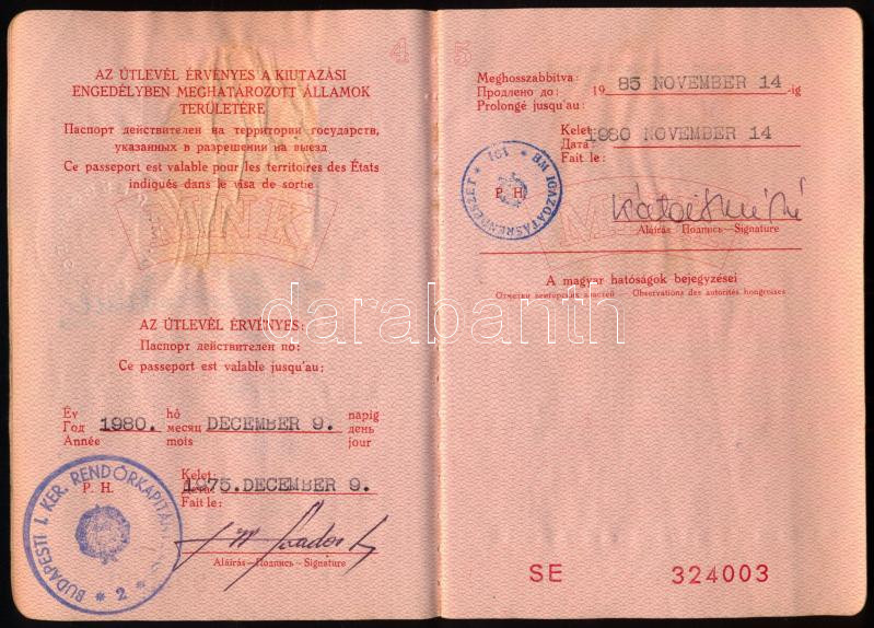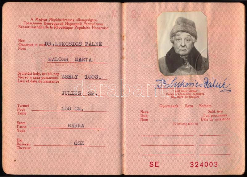 1975 Magyar Népköztársaság által kiállított fényképes útlevél Lukcsics Pálné részére