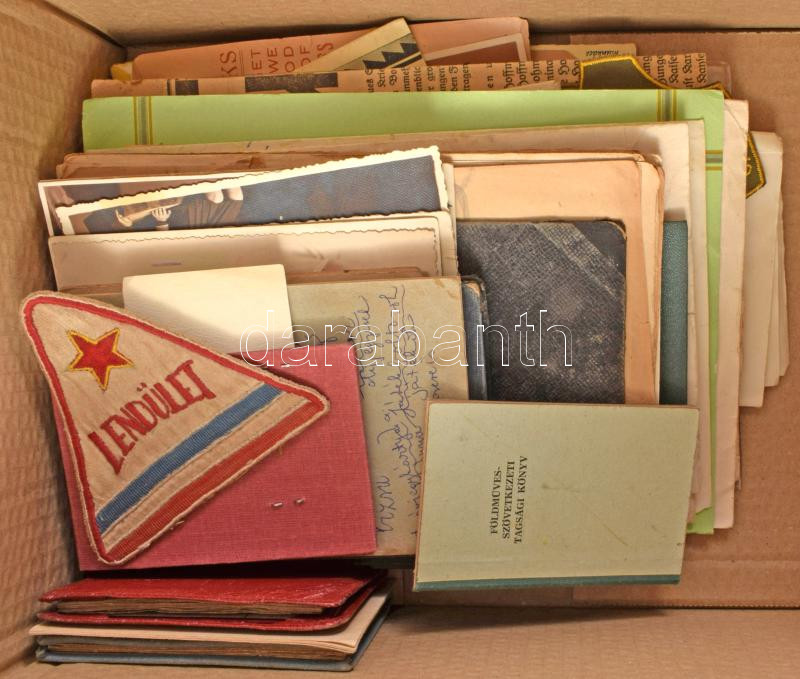 ca 1930-1960 Egy doboznyi vegyes érdekes okmány, nyomtatvány, szocreál igazolvány, stb