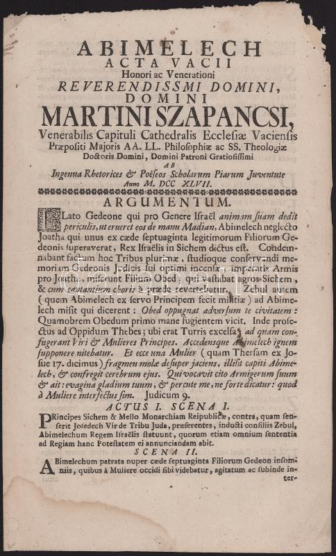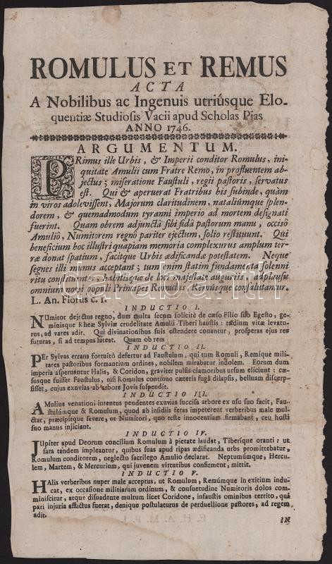 1746 Romulus et Remus [...] + Abimelech Acta Vacii [...], 2 db latin nyelvű nyomtatvány