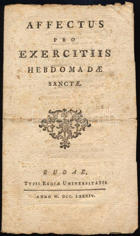 1784 Buda, Affectus pro exercitiis hebodamae sanctae, 8p