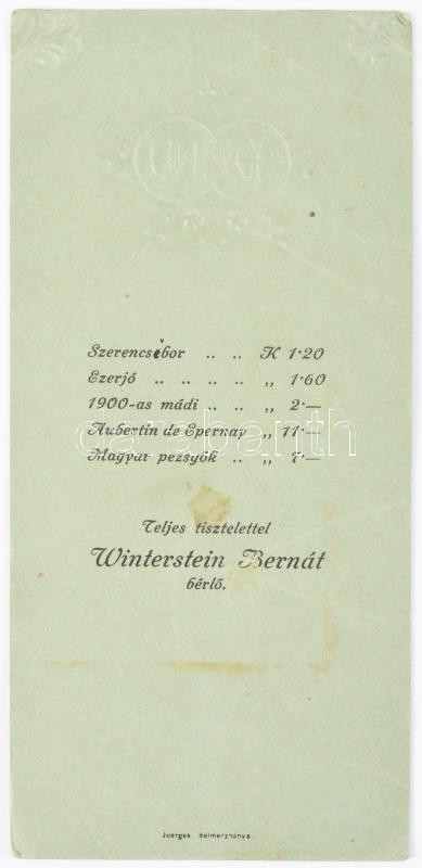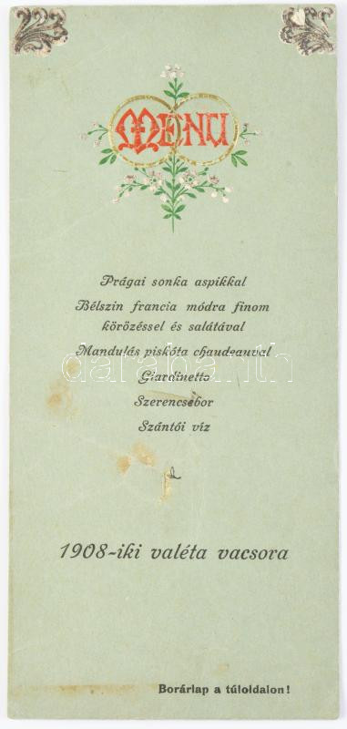 1908 Valéta vacsora menükártya (erdészeti iskolások ballagása)