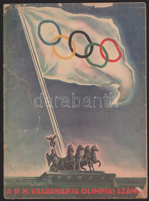 1936 A Pesti Hírlap Vasárnapja olimpiai száma, 1936. aug. 2., különszám a berlini olimpiáról, sérült borítóval, 44 p.