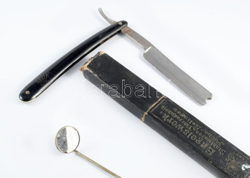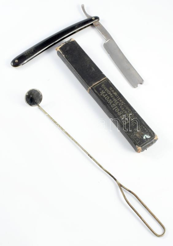 Antik borotva tokban és fogásztükör.