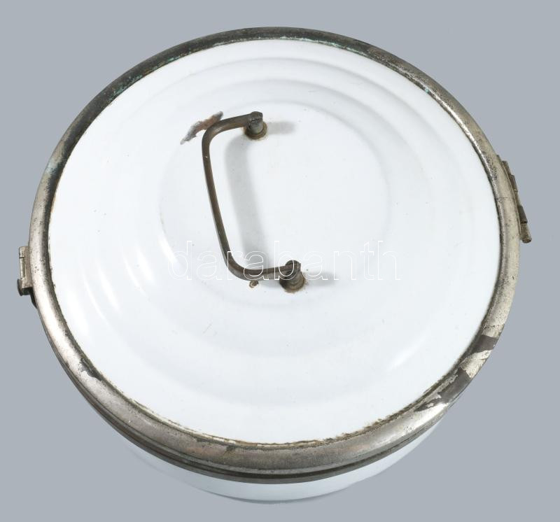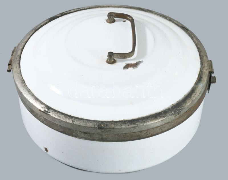 Budener zománc kenyér vagy sütemény tároló, kis sérüléssel d: 26 cm