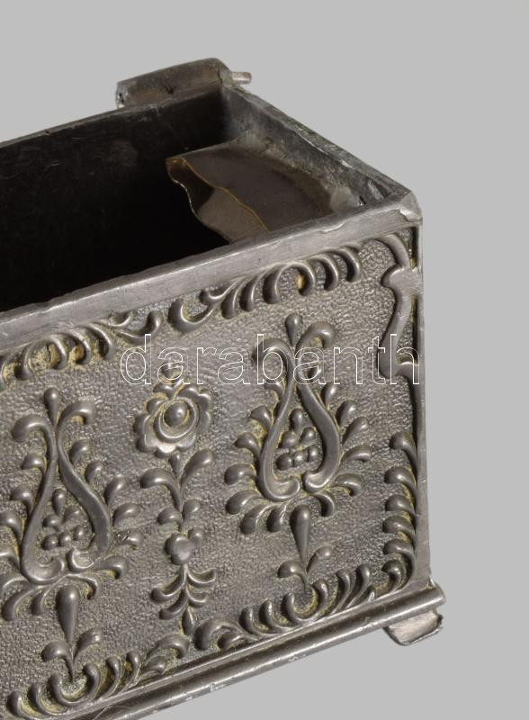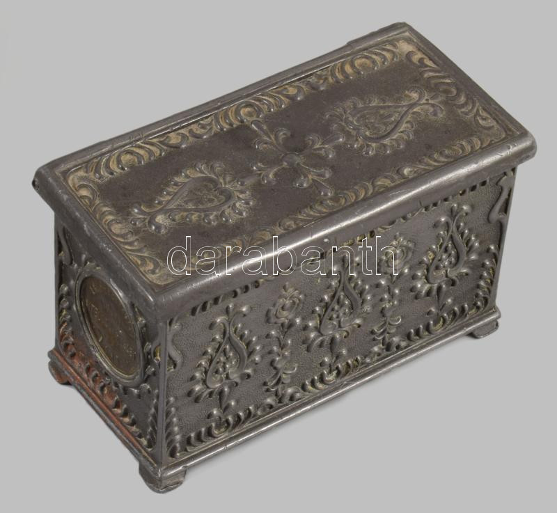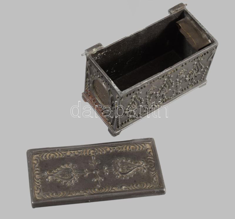 Erzsébetfalvai Ipari Hitelszövetkezet antik ón persely, 13x6x7 cm