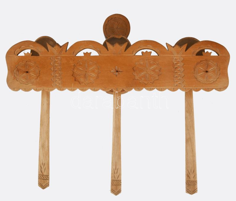 Faragott népi fa kanáltartó, kanalakkal, 36x24 cm