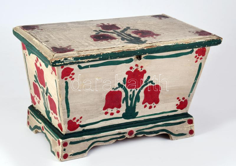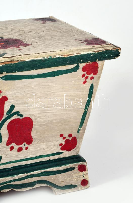 Festett fa kelengyés ládika. 33x20x20 cm Kopásokkal XX. sz. eleje.