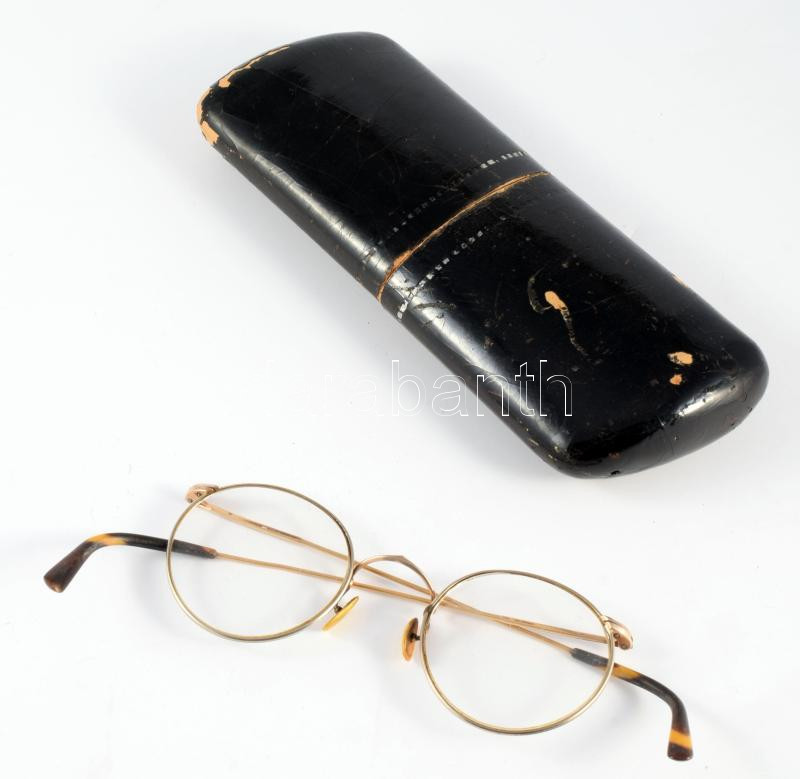Régi, drótkeretes szemüveg, tokkal