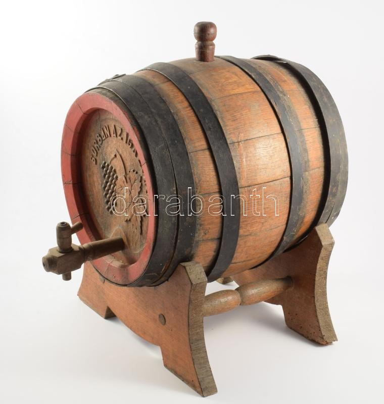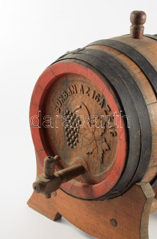 Régi fa kis boroshordó, tartón, 30x32 cm