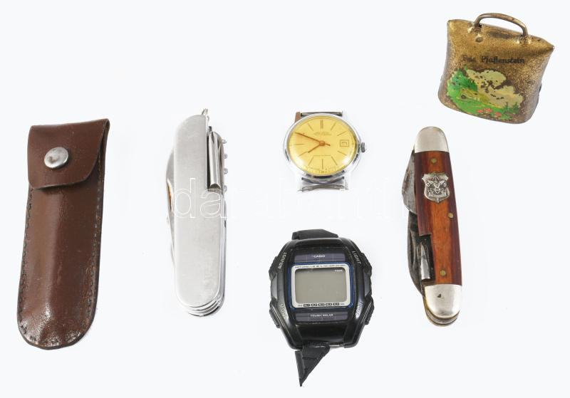 Zacskónyi vegyes bolha tétel, közte óra, csengő, bicskák