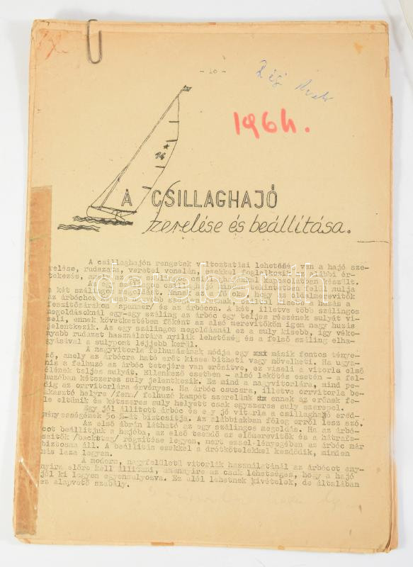 Jutasi István (1929-2011) olimpikokn vitorlázó személyes okmány és nyomtatvány hagyatéka. Fiatalkori naplói családtagok naplói, autográf visszaemlékezések, összes megjelent újságcikk, számos vitorlás újság, vitorlázással kapcsolatos könyvek, újságok, vele készült interjúk leiratai, egy két olimpiával kapcsolatos okmány. Érdekes vitorlázás történeti anyag, érdemes átnézni.