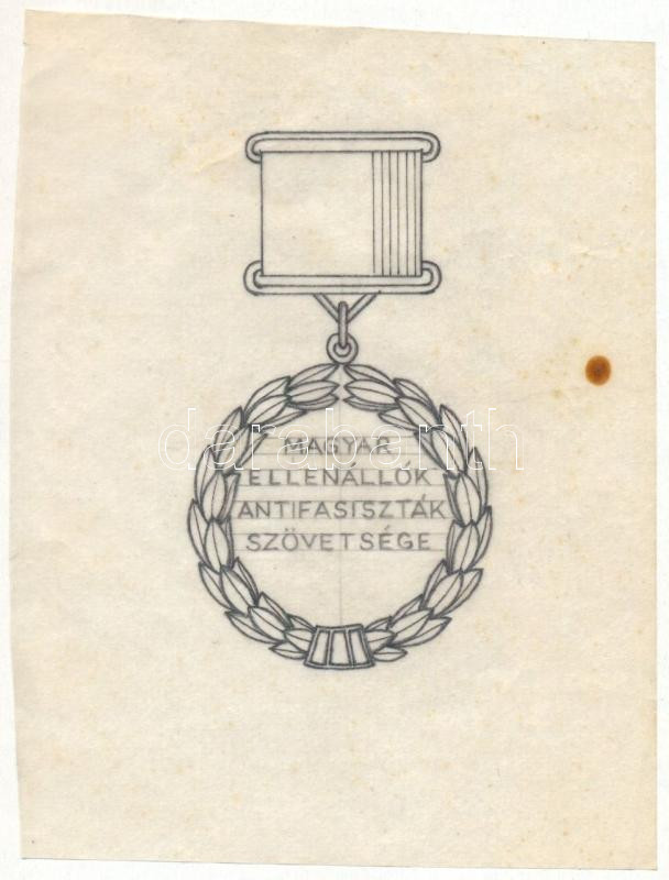 "Magyar Ellenállók, Antifasiszták Szövetsége" kitüntetés/jelvény terv, pauszpapír, jelzés nélkül, 10x8 cm