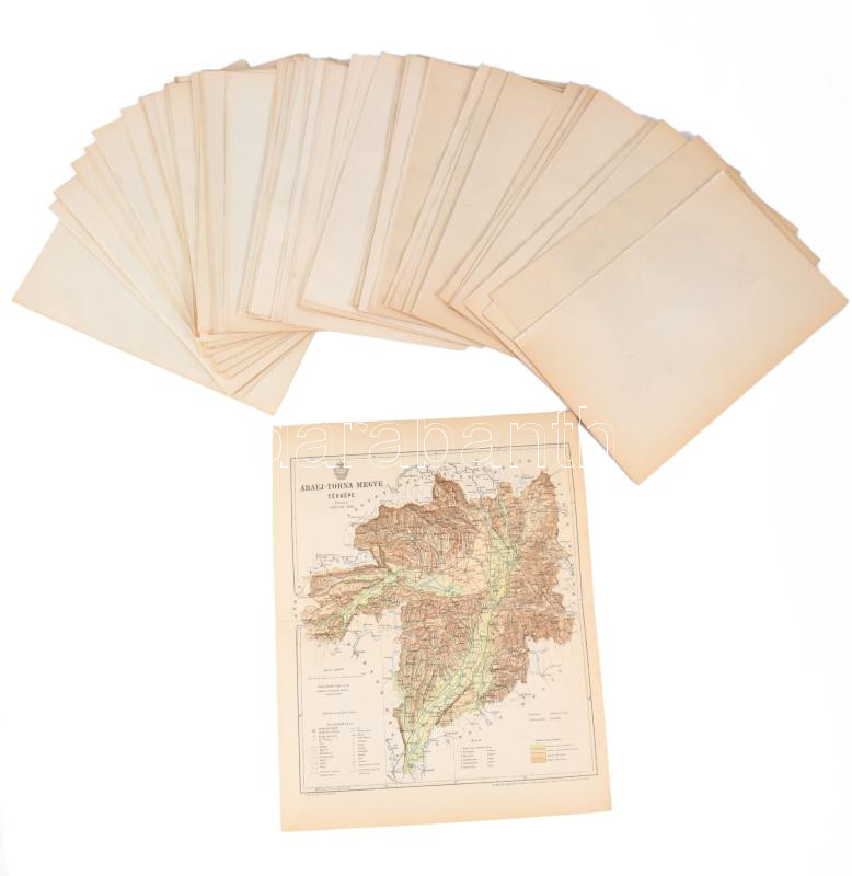 1893-1897 A Magyar Királyság és Horvát-Szlavónország 71 vármegyéje + Fiume térképe, összesen 72 db térkép-melléklet a Pallas Nagy Lexikonából, mind jó állapotban.